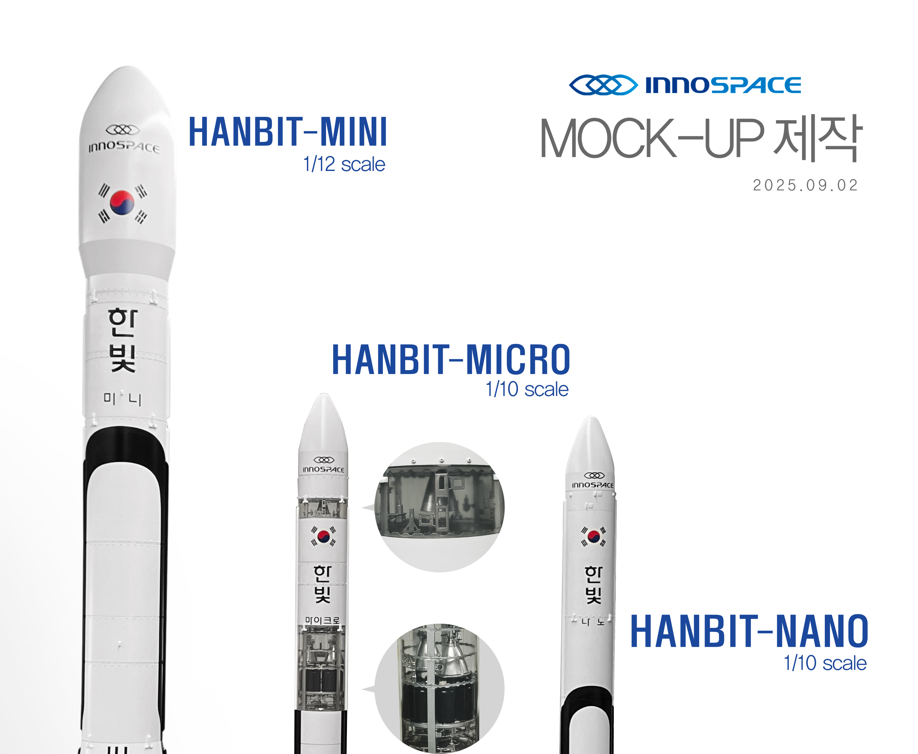 우주산업 2025.09.08 mockups of three Innospace launch vehicles and other components